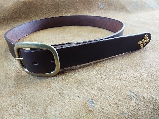オーダー品の35mm幅ベルト手染め焦げ茶