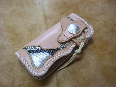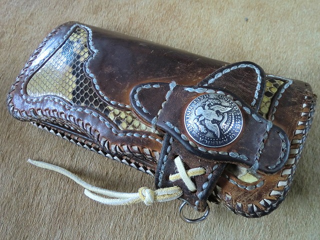 9年使用したパイソンインレイ仕様サドルレザー長財布