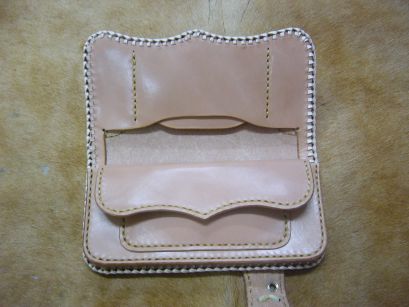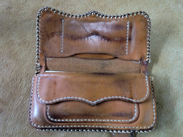 ベルト差し込みタイプロングウォレットの経年変化です。