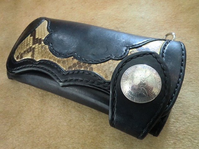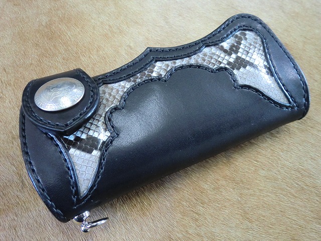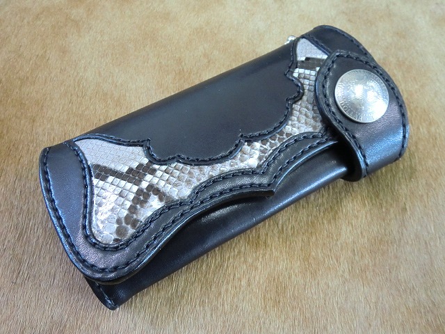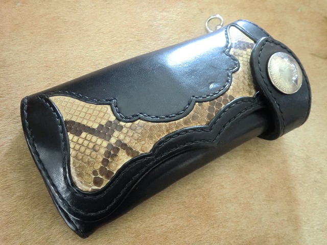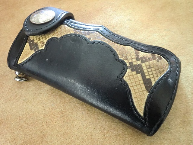 使用3年目のブラックサドルとパイソンのロングウォレット