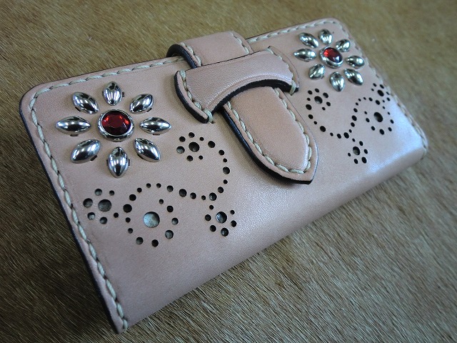 唐草パンチング&フラワースタッズのiPhoneカバー