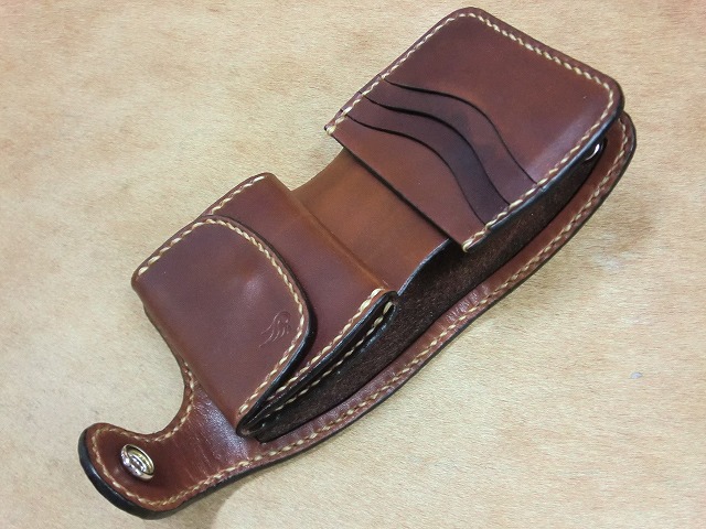 染色を施したサドルレザーで製作した