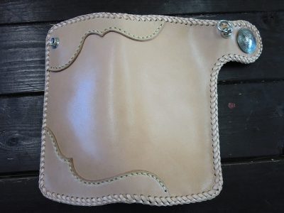 当て革で装飾を施しフチを3mm幅のレースを