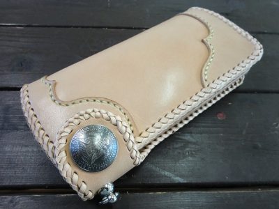 コンチョ付きフラップタイプのロングウォレットです。