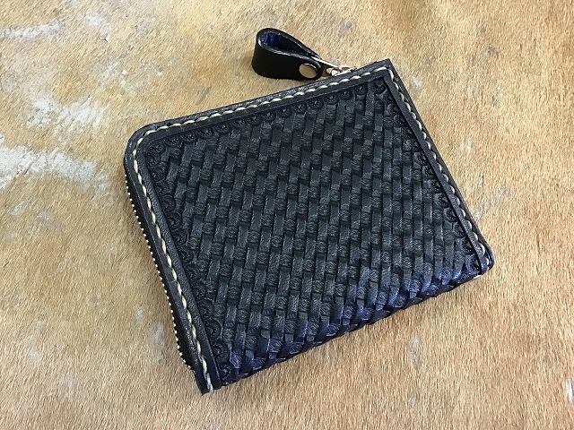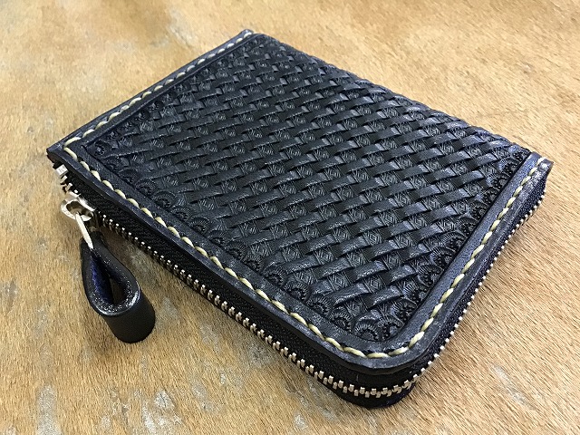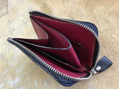 L字ファスナーミニウォレット/バスケット手染め紺