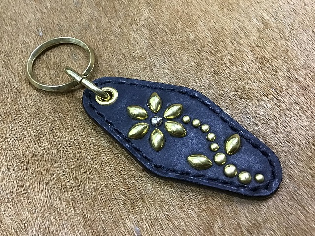 モーテルキーホルダー黒フラワースタッズ真鍮