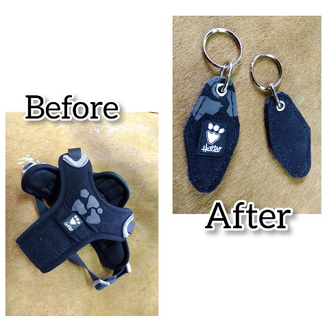 愛犬のハーネスをキーホルダーにリメイク