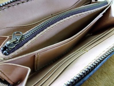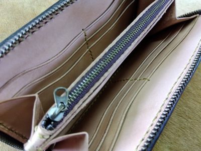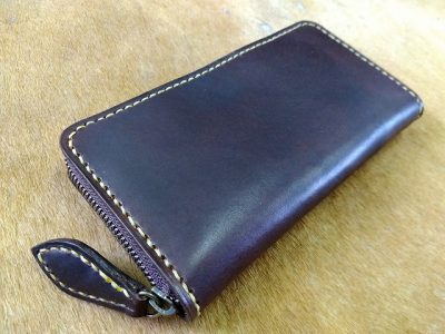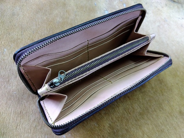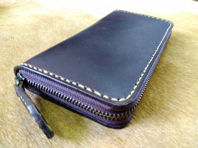 オーダー品のラウンドファスナー長財布/手染め茶色