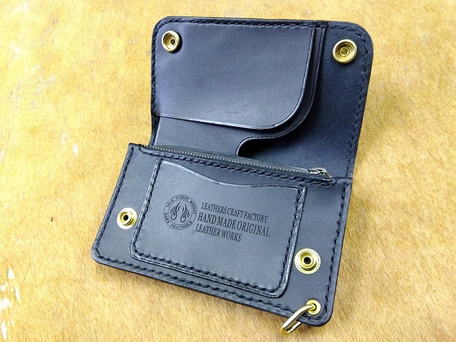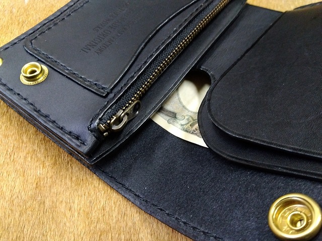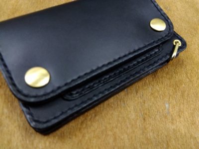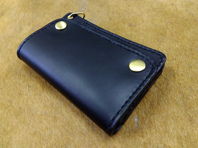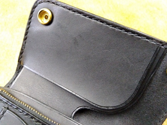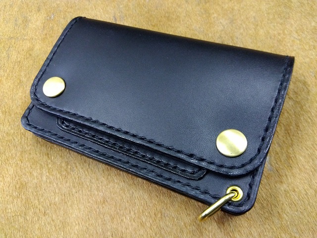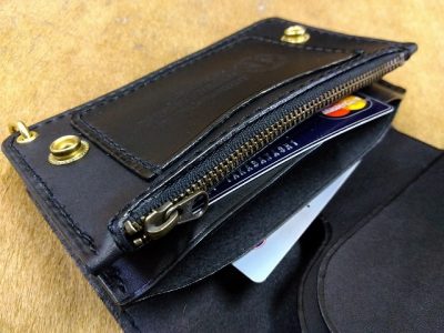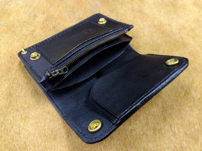 ショートトラッカーウォレットA1オイルレザー黒