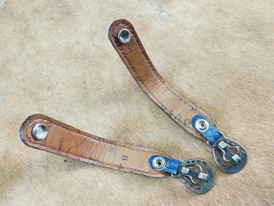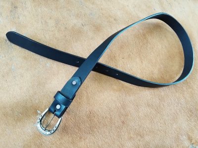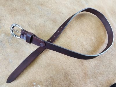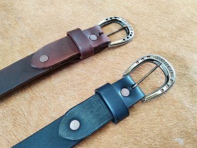 バックルを利用して、当店で用意した牛ヌメ革ベルトを