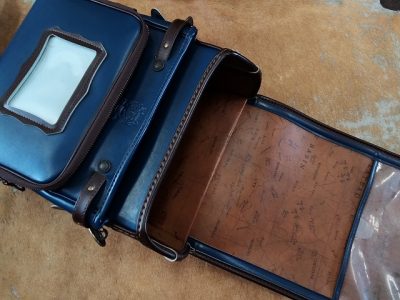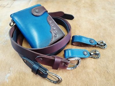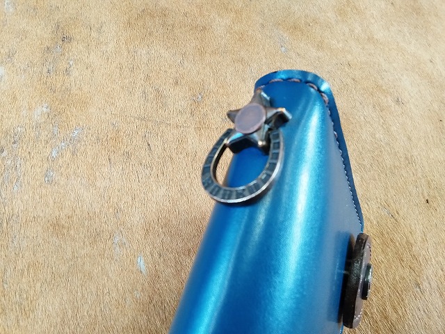 ■ショルダーストラップのバックルを利用して牛ヌメ革ベルトを