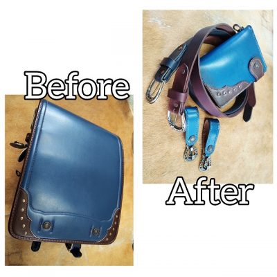使用して、黒と茶色のベルト2本にリメイクをさせて頂きました。
