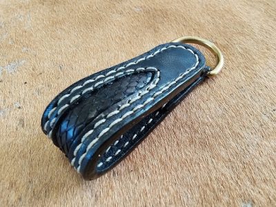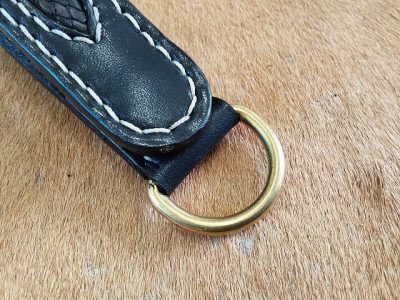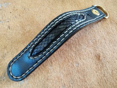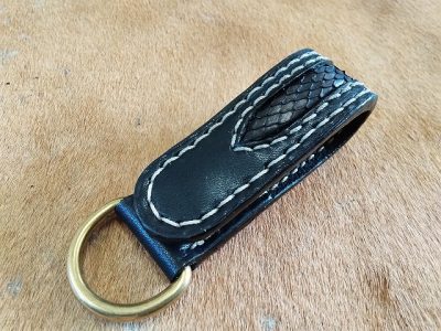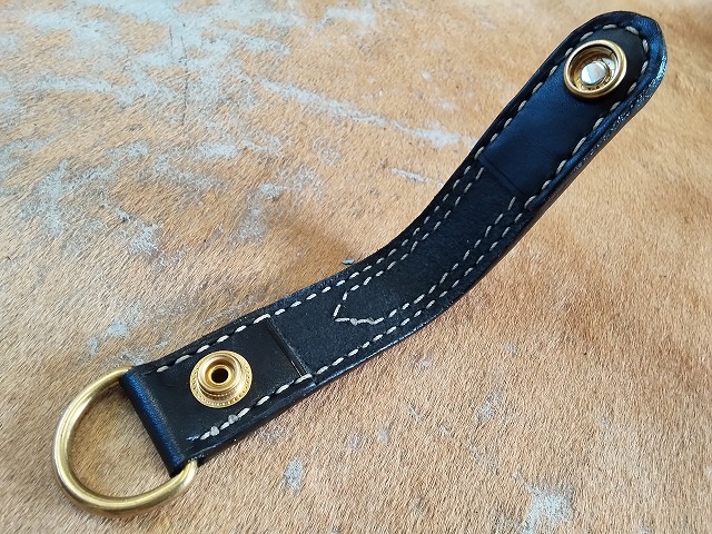 サドルレザーに、手染めで黒に染色を施した