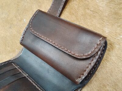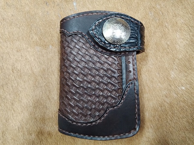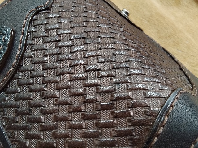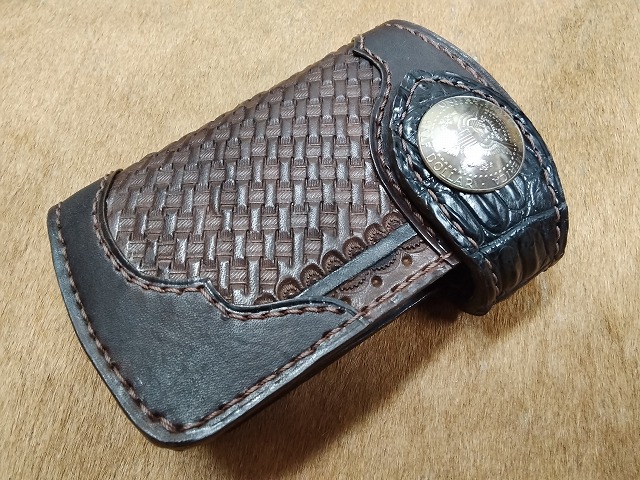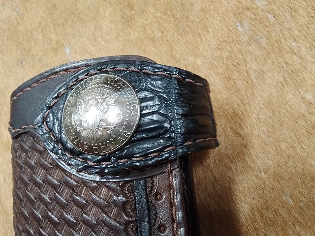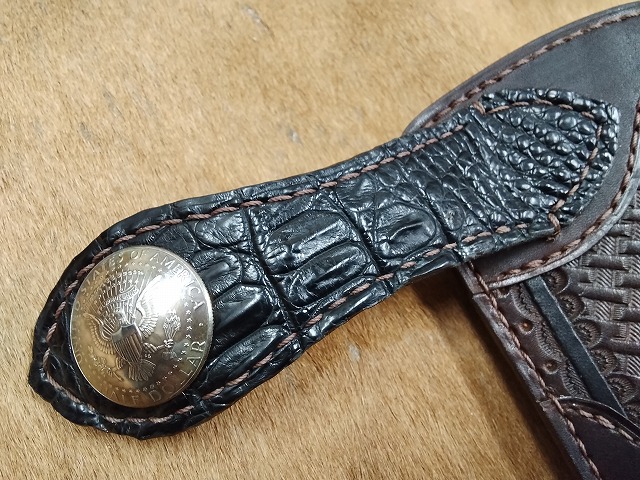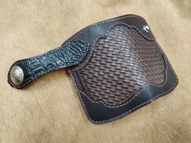 フラップ部分にはクロコダイルの革を貼りあわせ、